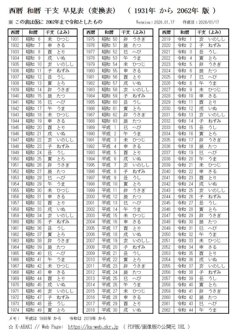 ■ 西暦-和暦-干支(十二支)の早見表(一覧表)
